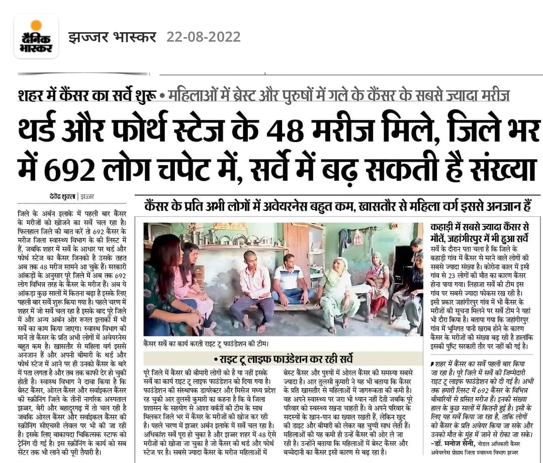 The Right to Life Foundation (RLF) is a government-recognized, CSR-registered NGO dedicated to health promotion, cancer awareness, survivor rehabilitation, education, women empowerment, and community welfare. Since 2019, we have: